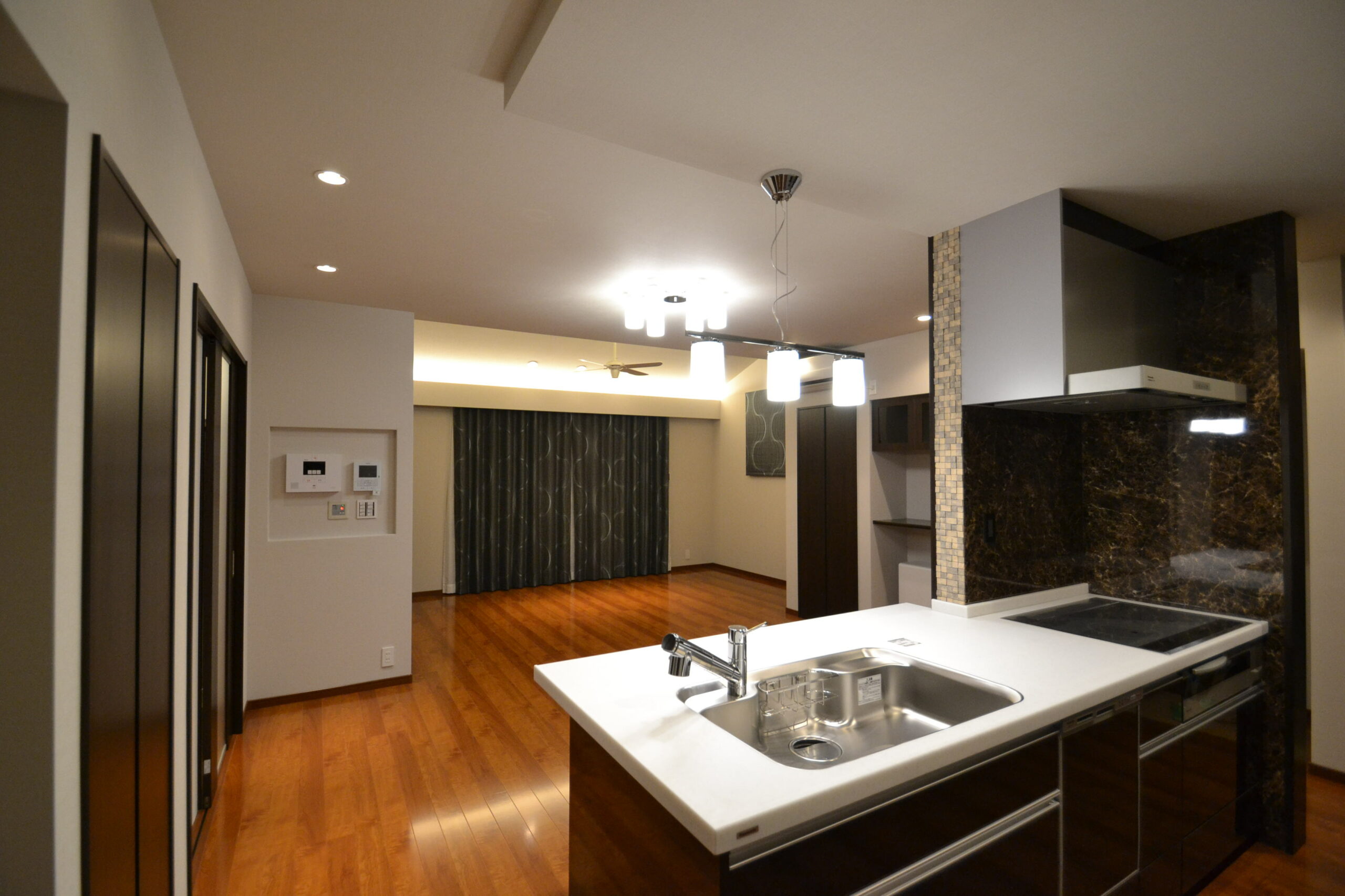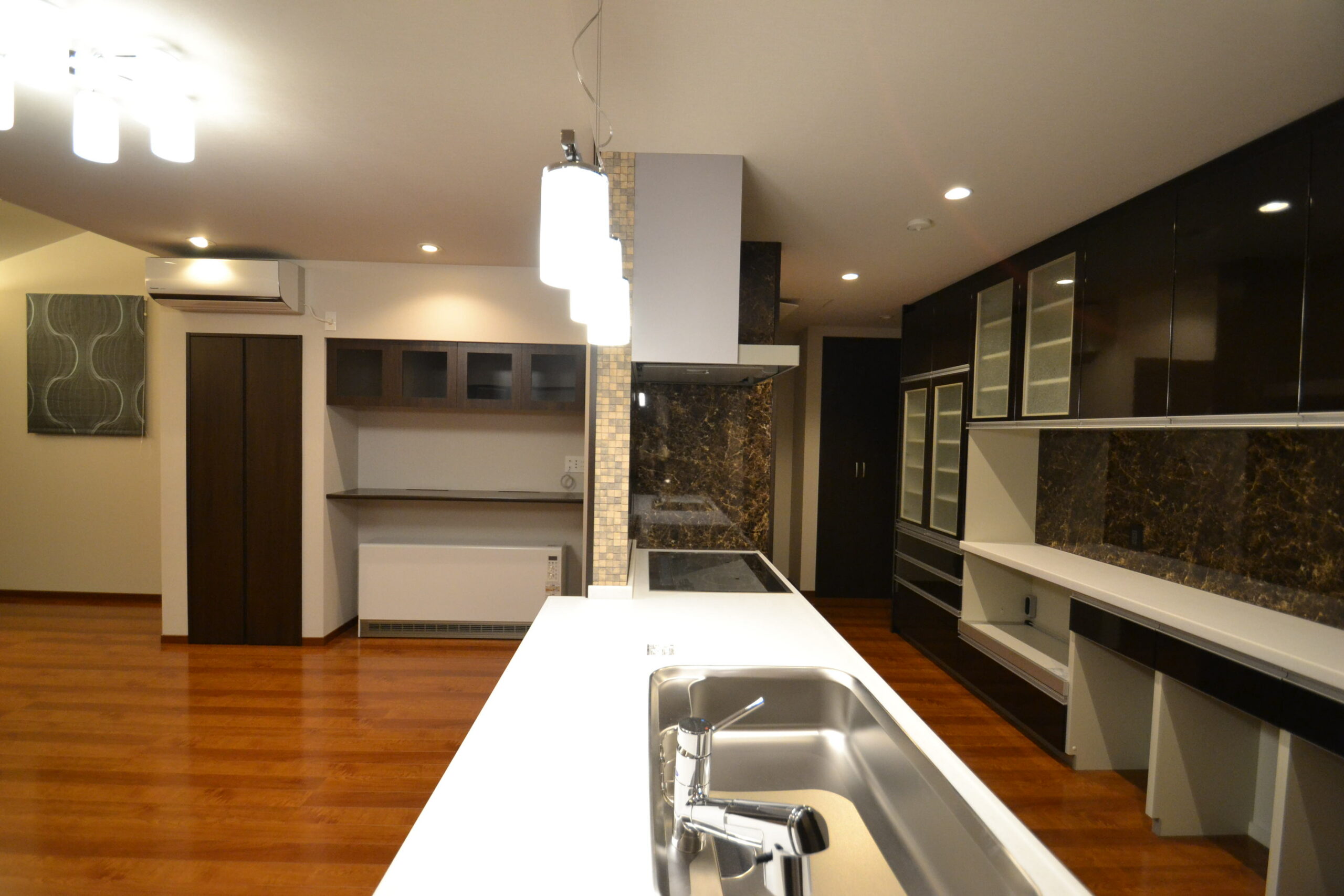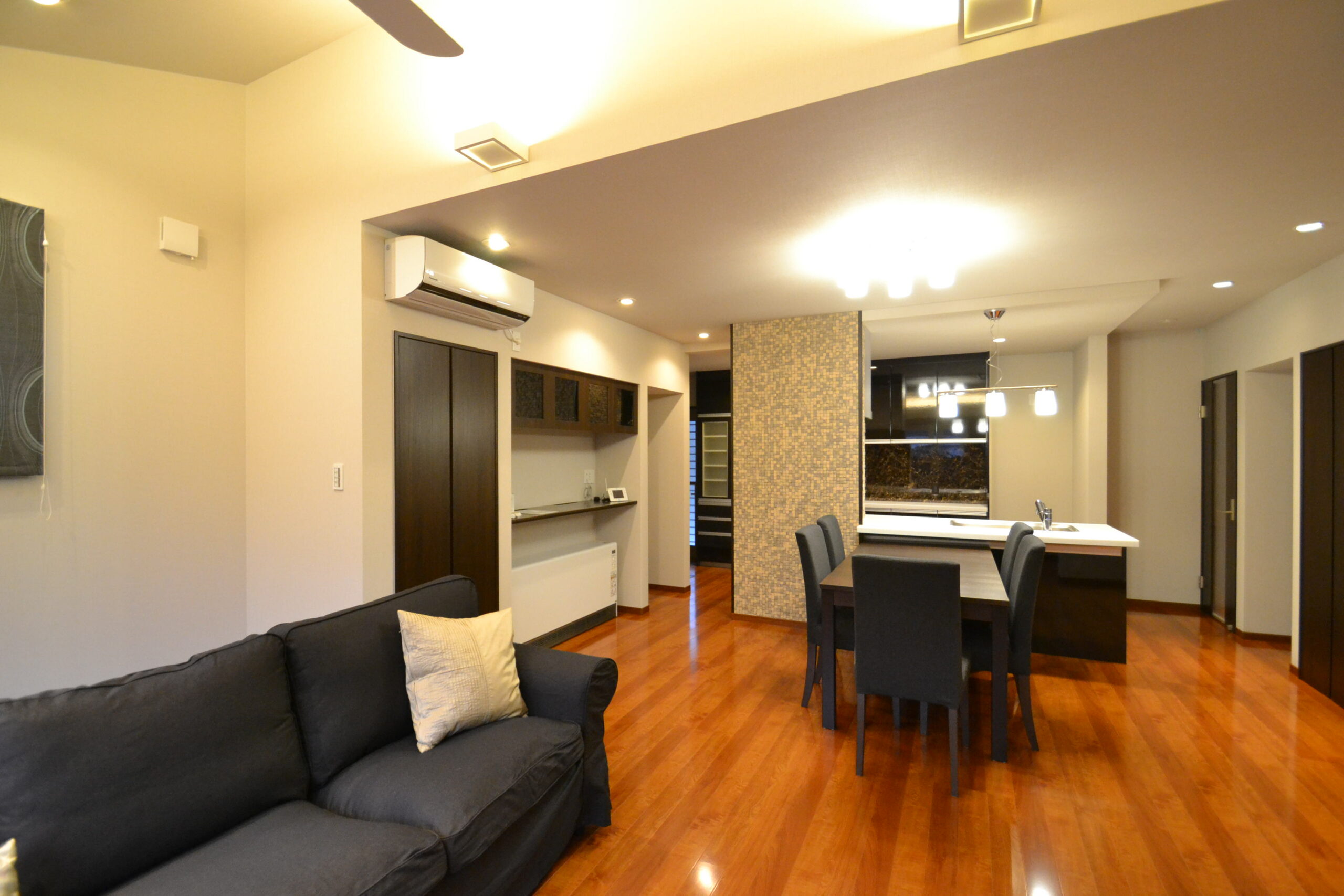 「ホテルのような空間」をテーマに、ご家族一人一人の個性を生かし、落ち着いた中にも華やかな表情を浮かべるお家。